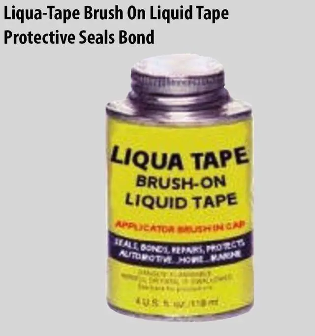 Liqua-Tape Brush On Liquid Tape Urethane based for lasting results. Applies as a liquid gel tape. Dries to a smooth protective tape like skin. To repair damaged wiring, battery terminals, insulates, repairs and protects. Applicator brush on cap. Seals, bonds, repairs, and protects. Perfect for automotive, home, marine and RV's. TV Time Direct Liqua-Tape Brush On Liquid Tape Protective Seals Bonds Damaged Insulates- Indoor & Outdoor Use. Urethane-based for lasting results. Applies as a liquid gel tape. 4 FL OZ (118 ml)