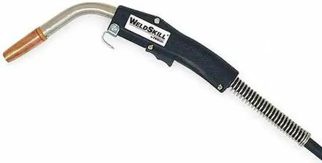 MIG Gun, MIG Gun Type Air-Cooled, Cooling Method Air-Cooled, Series WeldSkill WM 400, Maximum Current 400 A, Duty Cycle 60 Percent, For Gas Type CO2 (Carbon Dioxide), Maximum Wire Diameter 0.045 in, Cable Length 15 ft, For Rear Connection Type Miller-Compatible, Handle Type Curved, Trigger Type Standard, Neck Tube Type Fixed, Neck Tube Angle 60 Degrees, For Wire Type Aluminum, Solid, Model WM400M-15-3545, Tip Series WS14, Welding Processes MIG Welding (GMAW). This item has been restricted from sale in the following state (s): []