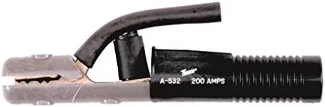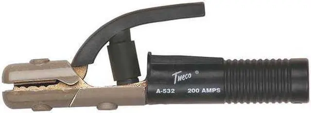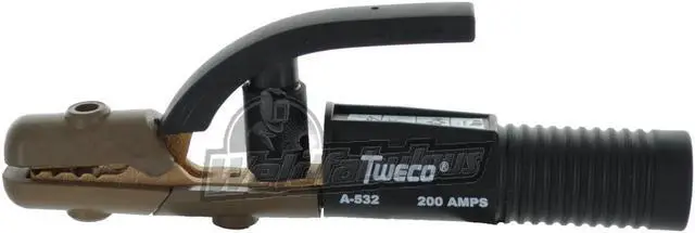 Electrode Holder, Maximum Current 200 A, Duty Rating Heavy Duty, Holder Jaw Material Copper Alloy, Type Clamp-Style, Welding Processes Stick Welding (SMAW), Wire Gauge 2/0, Cable Connection Type Ball Point Screw, Series TwecoTong A-Series, Features 6-Position Jaw, Ball Point Connection, For Maximum Electrode Diameter 5/32 in, Overall Length 8 1/2 in, Electrode Holder Model A-532. This item has been restricted from sale in the following state (s): []