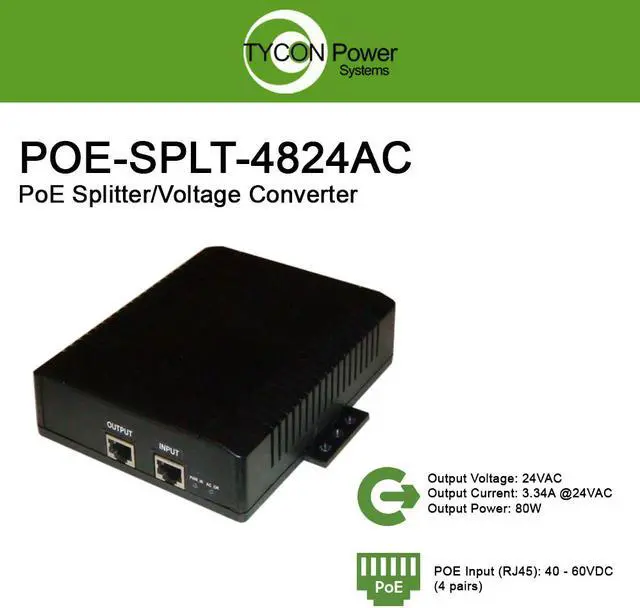 Tycon Systems POE-SPLT-4824AC POE Splitter - 48V DC POE Input