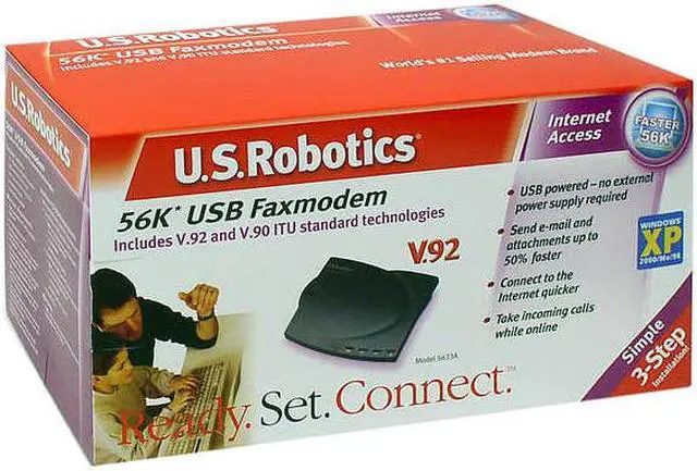 | Features | USB powered –no external power supply required Send e-mail and attachments up to 50% faster Connect to the Internet quicker Take incoming calls while online Installs in three simple steps |