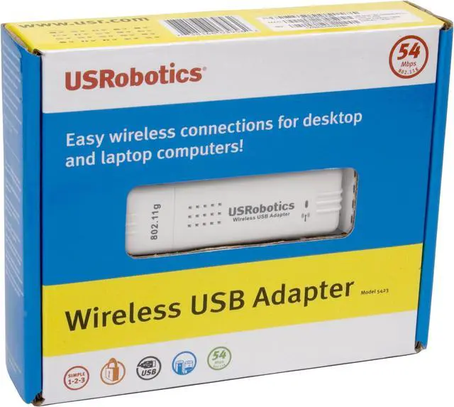 | Features | Fully compatible with all 802.11b and 802.11g equipment Highly secure, supporting WiFi Protected Access 2 (WPA2), 64 and 128-bit WEP encryption, WPA encryption (TKIP/AES-CCM/AES-OCB) 802.1x support for enterprise grade authentication Works with desktop and laptop PCs No tools needed to install Compatible with Windows 98SE, Me, 2000 and XP operating systems Slim profile design USB 2.0 and USB 1.1 compatible |