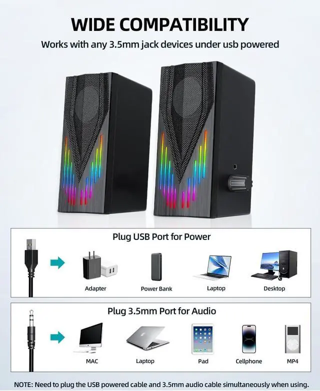 Plug and PlayUSB powered-Our speakers for gaming monitor are designed for your ease and convenience. Enjoy Plug and Play functionality without the need for any drivers- just plug in the USB powered cable to start enjoying your audio!