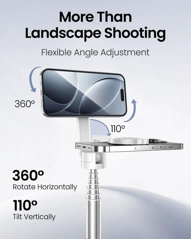 | Special Feature | 360° Rotating Phone Holder, Adjustable Height, Auto-Open Tripod Legs, Built-In Remote, MagSafe Compatible, Magnetic Phone Mount, One-Tap Quick Setup |