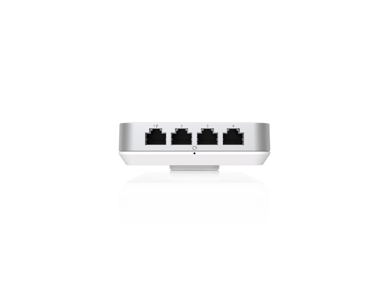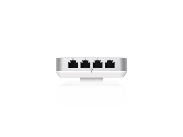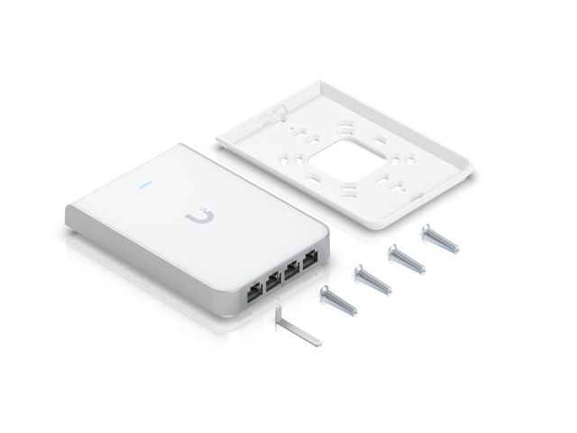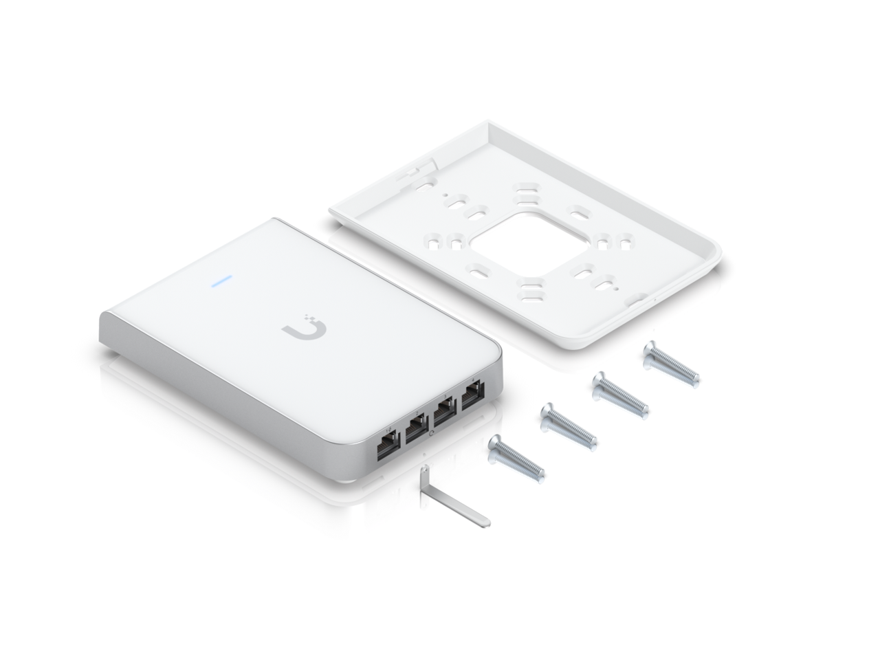 - Wall-mounted WiFi 6 AP with 6 spatial streams and a built-in 4-port switch ideal for single-room coverage in hospitality environments.