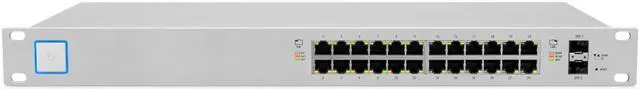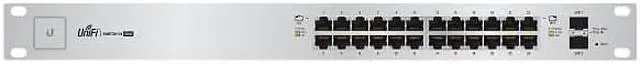 The Switch 24 PoE 250W (US 24 PoE 250W), a fully managed switch with (24) GbE RJ45 ports and (2) 1G SFP ports. Each of the switch's ports can provide either PoE+ or configurable, 24V passive PoE to UniFi access points or other PoE devices. This switch can be monitored or configured from anywhere with the powerful, intuitive UniFi Network web application and mobile app.