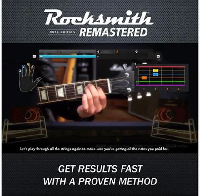 The latest edition of the fastest method to learn guitar and bass, Rocksmith 2014 Edition - Remastered has been newly upgraded to help you learn to play more quickly and effectively than ever. It adapts to your skill level, and includes a customizable learning curve, expanded practice tools, expanded practice tools, stat tracking, improved menus and more. New players who purchase Rocksmith 2014 Edition - Remastered will also get six bonus downloadable songs from a wide variety of genres. These six songs will be available for purchase separately for all owners of the original Rocksmith 2014 Edition.