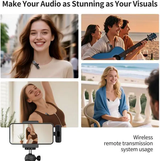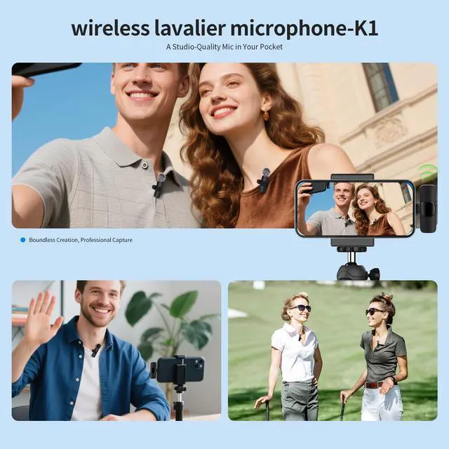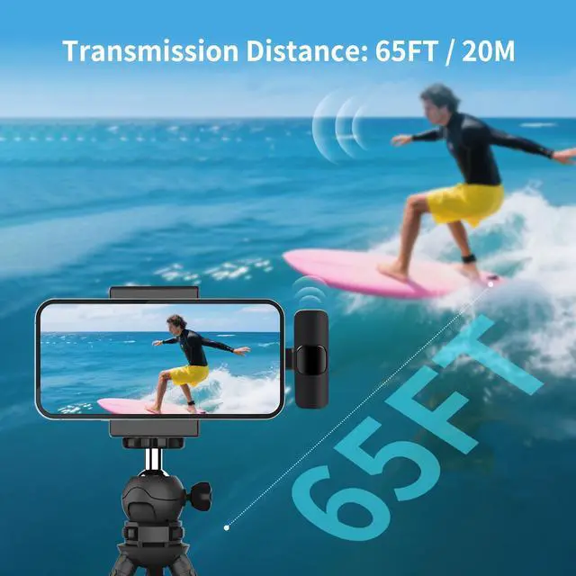 Wireless Transmission for Greater Freedom: This mini wireless microphone for iphone has a compact, portable design, allowing you to hold it in your hand or clip it to your clothes. With no cables to worry about,the lavalier microphone provides stable transmission up to 98 feet, making it perfect for clear recordings or video shoots indoors and outdoors. Ideal for content creators on platforms like TikTok and YouTube.