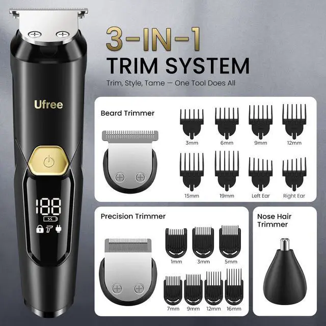 Precision Beard Head: Sharp blades with 7 guard combs (1mm, 3mm, 5mm, 7mm, 9mm, 12mm, 16mm)