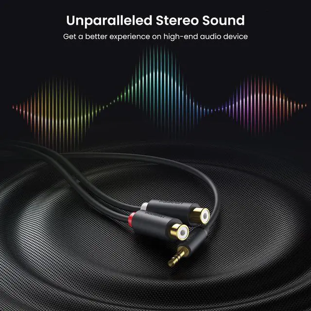 The 3.5mm to 2RCA audio cable features high-purity copper conductor to improve sound quality and transparency, reduce distortion, and more.