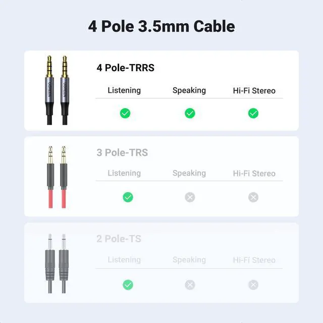 - Universal Fit: UGREEN Male to Male 3.5mm Audio Cable stereo jack lead features ultra-slim aux plugs to ensure a snug fit to devices of standard auxiliary ports, compatible with TV, headphone, earphone, speaker, amplifier, soundbox, soundbar, 3.5mm external microphone, laptop, tablet, compatible with MacBook, iMac, iPod, iPad, iPad 9, PC, Nintendo Switch/Switch 2, Xbox One/360, PS5 controller, PS4/PS3, steam deck, smartphone like iPhone, Samsung S10/S9/S8/A21S/A71/A70, Huawei P30 lite, Xperia L1, MP3/MP4 player, DVD