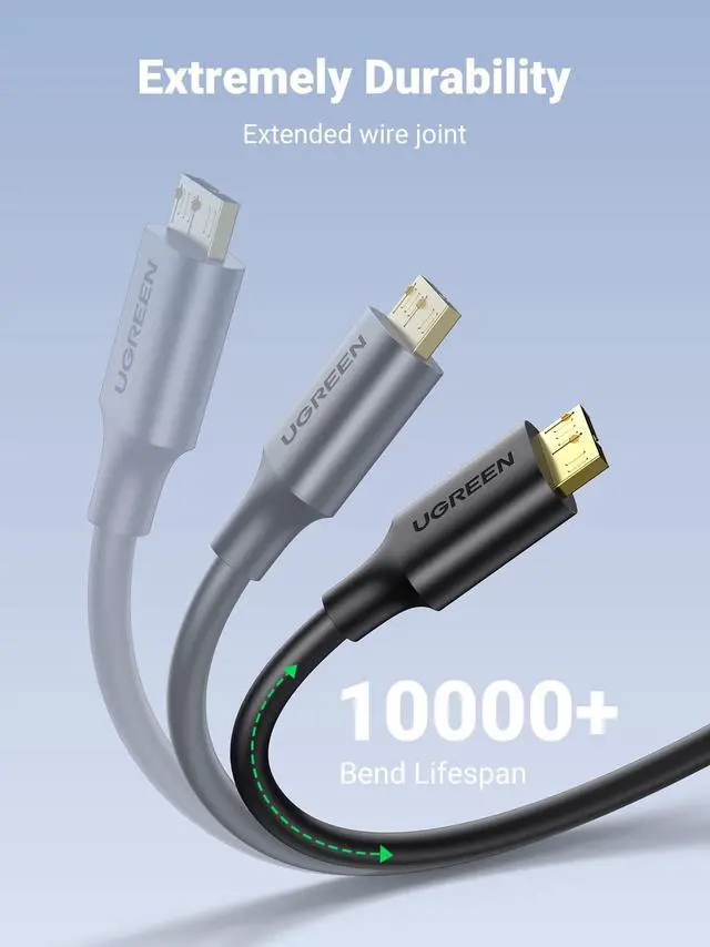 5 Gbps Transferring Speed: UGREEN micro USB 3.0 cable supports USB 3.0 standard data transfer rate at up to 5 Gbps, 10x faster than USB 2.0. HD movies can be transferred in just seconds.