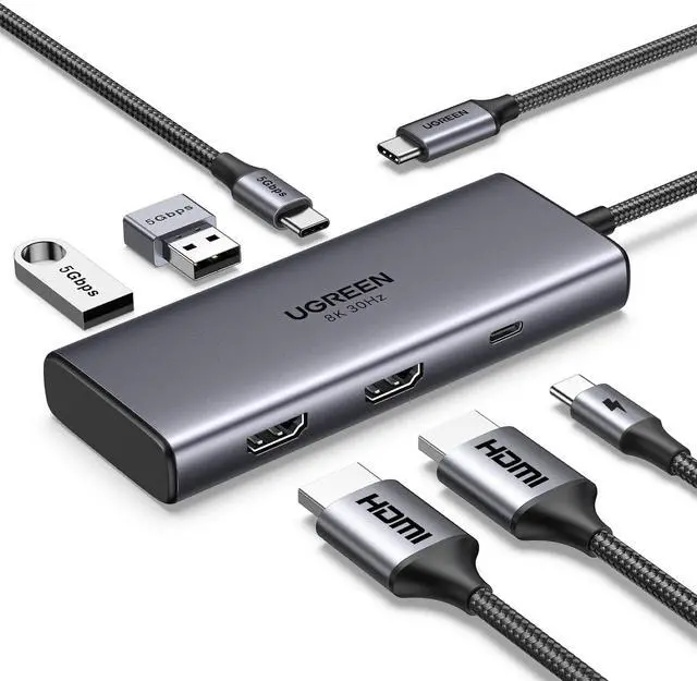 UGREEN Docking Station, Revodok 206 USB C Hub (6-in-1) with Dual 4K@60Hz, Single 8K@30Hz, 100W Power Delivery, 3X 5Gbps USB Data Ports, USB-C Dock for Thinkpad, HP, Laptops and More