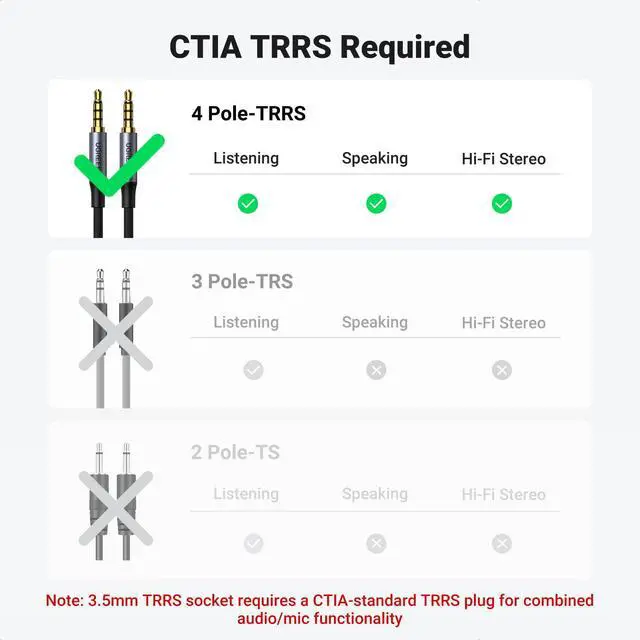 The 3.5mm TRRS splitter with Oxygen-free copper wires and triple shielding protect against interference, signal loss, and reduce noise.