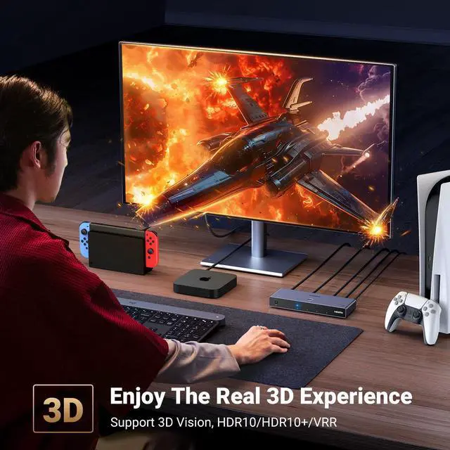 - Compatible with Multiple Devices: This HDMI 2.1 switch works with most devices with a standard HDMI interface. Compatible with Nintendo Switch/Switch 2, PS5/PS4/PS3, Xbox 360, Xbox One, Blu-ray player, Roku TV, Apple TV, Firestick, PC, laptop, HDTV, monitors, projectors, etc