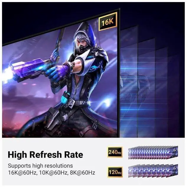 With a bandwidth of 40Gbps, this latest DP 2.1/2.0 cable actually offers 3X bandwidth as DisplayPort 1.4 (32.40 Gbps). It brings you a smoother gaming experience without lag and signal loss.