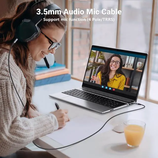 UGREEN 3.5mm audio cable features dual 4-pole TRRS jacks to make microphone function available, which enables you to use the mic function of headsets or connect a 3.5mm external microphone to a laptop, PC, smartphone. This auxiliary cable is ideal for game playing and video calls.