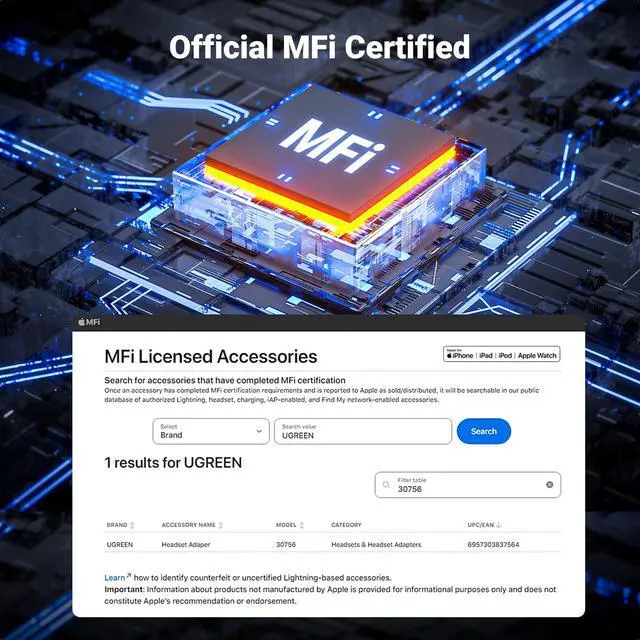 Apple MFi Certified, Safe and Reliable