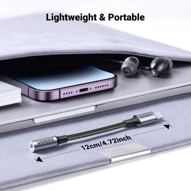 UGREEN 3.5mm plug to Lightning cable made from original Apple chips provides a secure and stable sound transmission. 100% compatibility to the iOS system without error message.