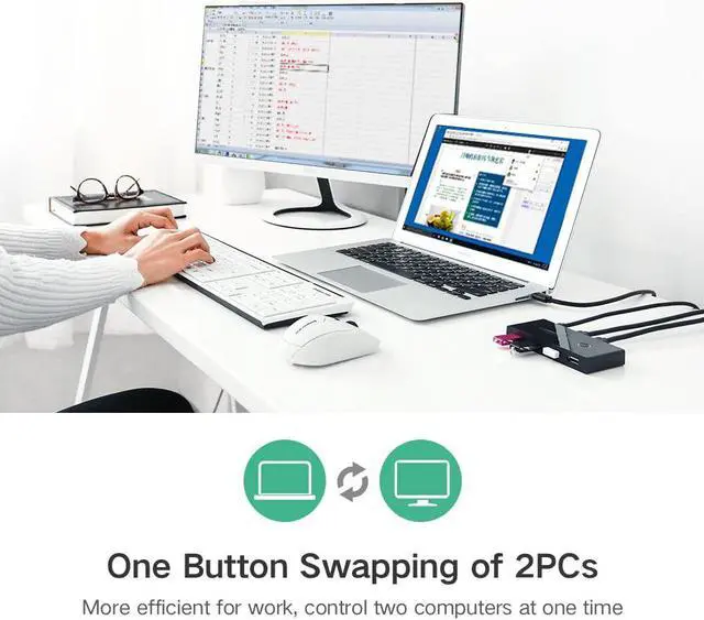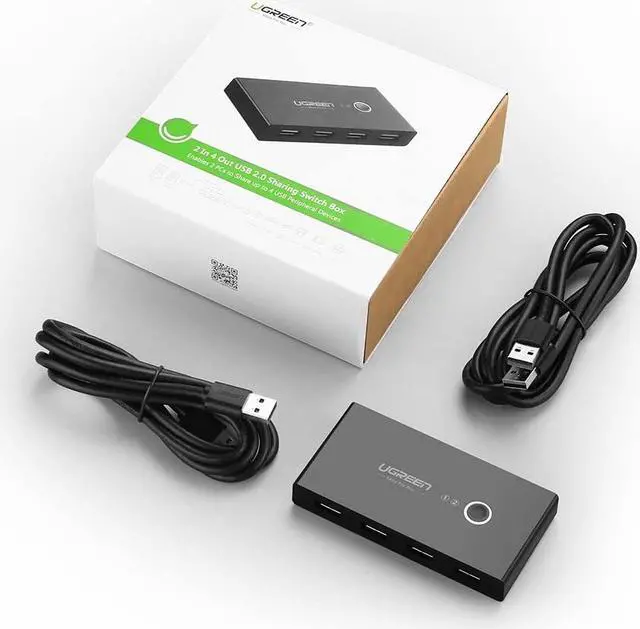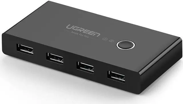 Share 4 USB devices between 2 Computers UGREEN 4Port USB Switch is an excellent choice to share 4 USB devices between two Comptuers; It's ideal for sharing a printer or scanner in a small office environment; It's also great for use at home if you have multiple PCs or Macs; Supports More Systems&Hassle Free Compatible with Windows 10/8/ 8.1 /7 / Vista / XP and Mac OS X, Linux and Chrome OS; No driver installation required for compatible systems; Switch at One Push, LED Indicates 2 Hosts Easily switch between 2 Computers via a push button with LED indicats the active computer; Power for More Power up the switch via the Micro USB port to access devices such as External HDD, Digital Video Cameras and more;