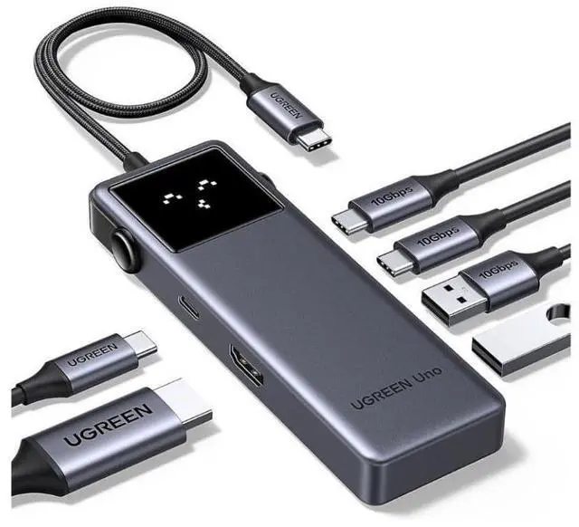 Groovy Robot Design: 6-in-1 Uno usb c hub features four smart status emojis. Unleash more potential from your laptop's USB-C port with two 10 Gbps USB-C 3.2 Gen 2 ports, two 10 Gbps USB-A 3.2 Gen 2 ports, 4K@60Hz HDMI