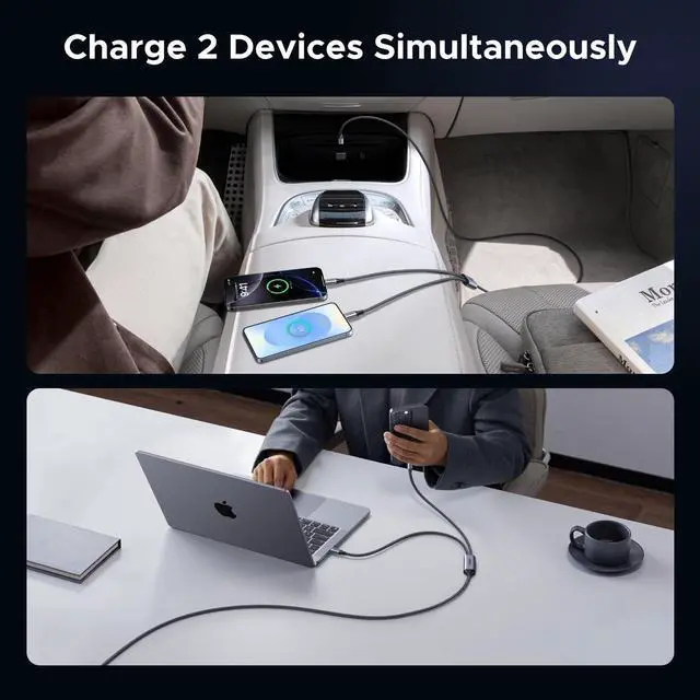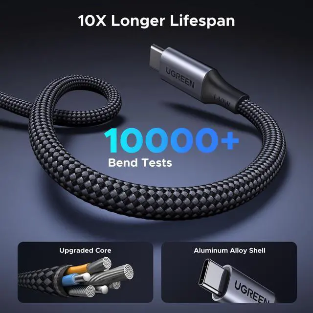 UGREEN 140W USB C Cable, 6.6FT 2-in-1 USB C to USB C Cable, Fast Charging for iPhone 16/16 Pro Max/15/14 Series, Galaxy S25/S24/S23 Series, MacBook Air/Pro, iPad Pro/Air, Steam Deck, and More