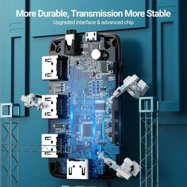 This HDMI Switcher has a built-in high-performance chip, and delivers video at the resolution of 4K@30Hz, 2K@60Hz, 1080P@120Hz, 3D, providing stunning 4K video for you.
