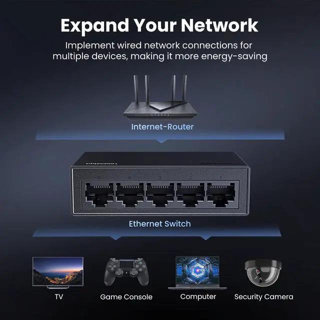 ![]() 5-Port Gigabit Switch | ![]() 5-Port 2.5Gbps Switch | ![]() 6-Port 2.5Gbps Switch | ![]() 10 Port PoE Switch | ![]() 16-Port Gigabit Switch | ![]() 6-Port PoE Switch | ![]() 8-Port Gigabit Switch |
