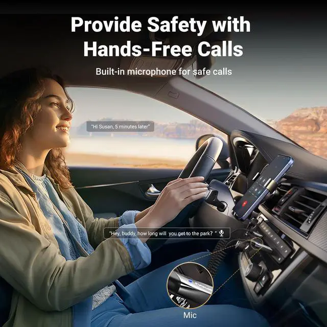 Hands-Free Calling: Built-in with microphones, UGREEN Bluetooth car aux receiver allows you to enjoy phone calls with hands-free calling straight through the car's speakers. With the help of this compact Aux Bluetooth car kit, you dont have to look down at the phone on the move. Have a safe journey!