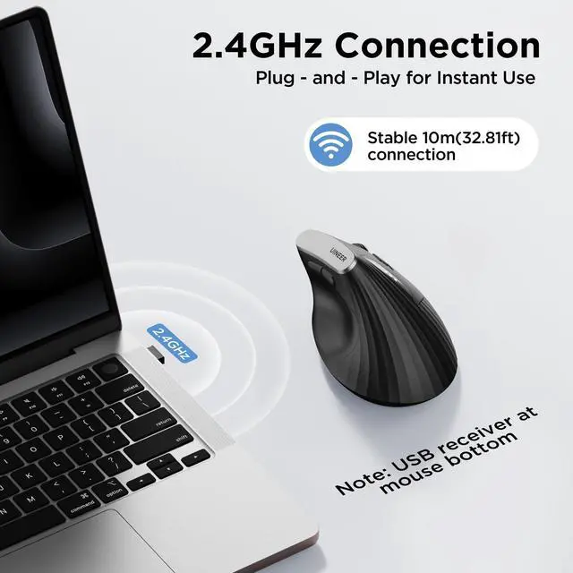 This mouse offers USB-A receiver and Bluetooth connection. The BT mode supports devices with Bluetooth connection functions such as Mac Book/Chrome Book/tablet/phone, and the USB-A mode supports devices with a USB-A port such as desktops/laptops
