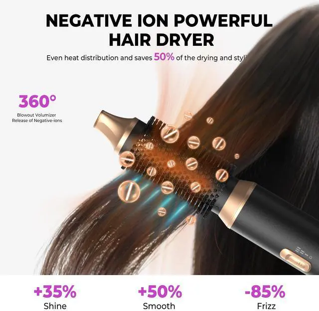 Built-in negative ions tame frizz, neutralize static, and seal hair cuticles, leaving your hair smooth and shiny.