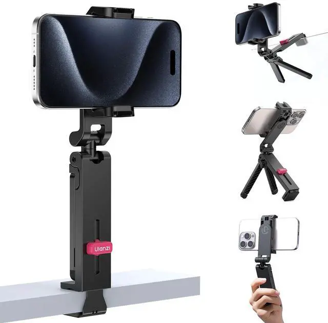 Cold Shoe Mounts + Universal Compatibility The clamp fits phones 2.36-3.35 inches wide and includes dual cold shoe mounts for external lights or microphones. Great for vloggers, online classes, or live streaming, offering a professional setup for enhanced video quality and audio.