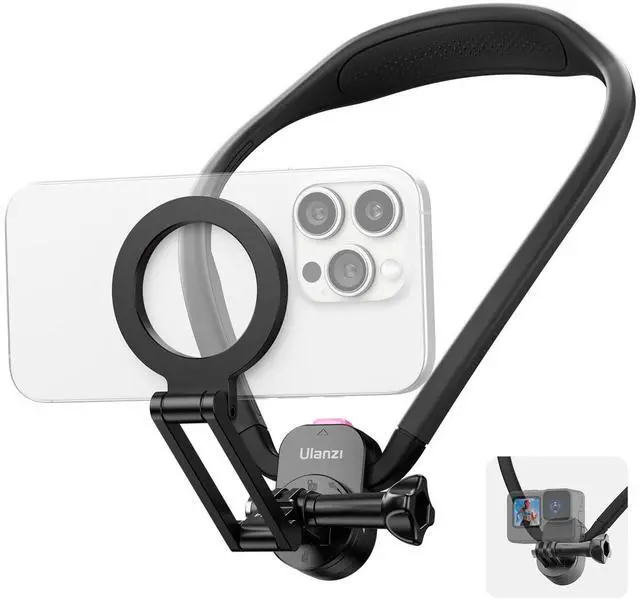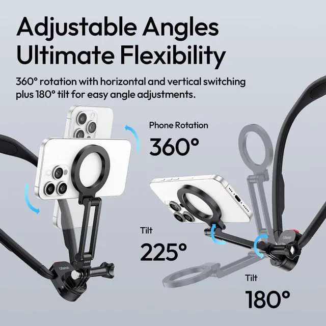 MG14 Magnetic Neck Mount for Phone/Action Camera, Phone Neck Holder Hands Free POV/Vlog Video Recording for iPhone Samsung Sony LG Google All Smartphones and GoPro Insta360 DJI Action Cameras