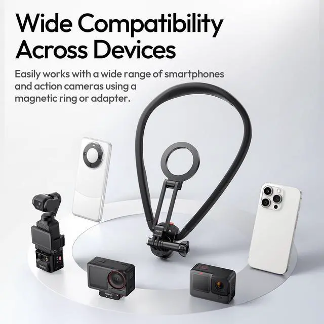 Wide Compatibility Across Devices: Easily works with a wide range of smartphones and action cameras, come with magnetic ring and action camera adapter. Such as iPhone Samsung google Sony all smartphones, GoPro Hero, Insta360, DJI action cameras and more.