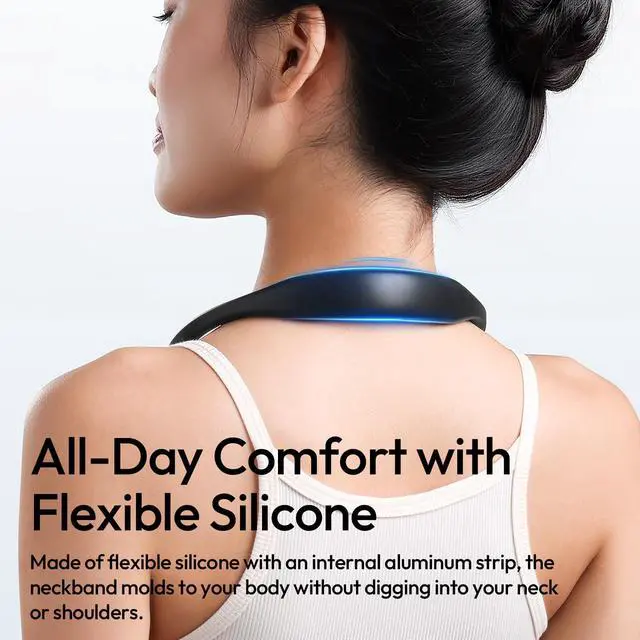 All-Day Comfort with Flexible Silicone: Made of flexible silicone with an internal aluminum strip, the neckband molds to your body without digging into your neck or shoulders.