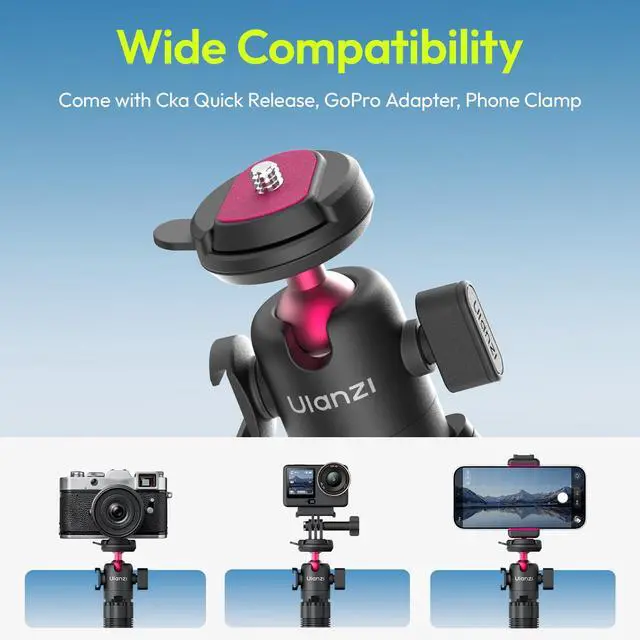 CKA Quick Release & Cold Shoe Mounts for Creators: Snap your device on or off instantly with the CKA quick-release system. Built-in cold shoe mounts on the tripod and phone holder let you add a microphone or LED light, helping you create stable, professional-quality videos anywhere.