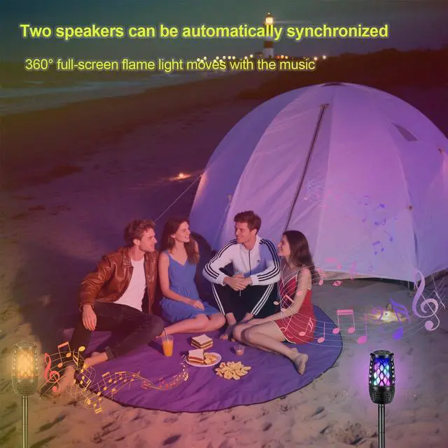 Colorful LED Flame Speaker Gift for Men, Outdoor Speaker Waterproof, Bluetooth 5.3, Stereo Sound, Portable Wireless Speaker with Stake, Hook