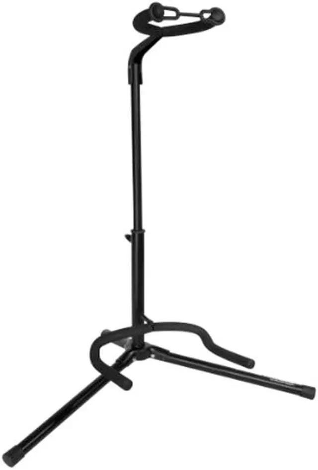 Keep your acoustic, electric or bass guitar safe onstage or in the studio with Ultimate Support JS-TG101 tubular guitar stand. The heavy-duty steel tubing is black powder-coated and covered in protective rubber everywhere your guitar contacts the stand to protect the instrument's finish. The Tubular Guitar Stand holds a single instrument safely and securely.