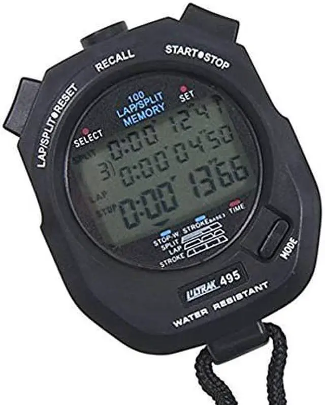 100 dual split recallable memory Memory recall during operation Takes splits from within recall mode Time, calendar and alarm Water resistant; lithium battery