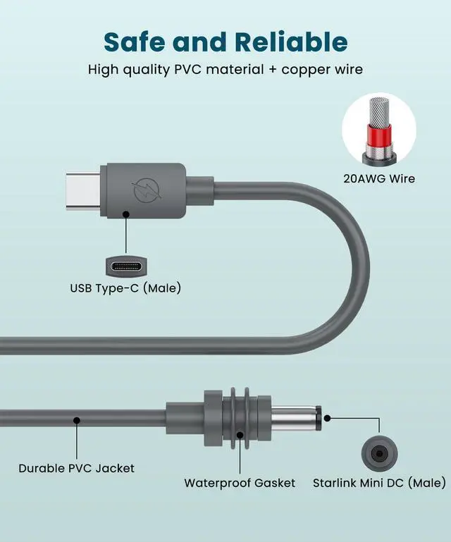 - [Durable and Corrosion-Resistant]Our mini starlink cable is made with high-quality PVC composite material, providing exceptional durability and strength. The starlink mini usb c cable cable is designed to resist tangling and breakage, and its corrosion-resistant properties ensure a longer lifespan, making it the perfect choice for both indoor and outdoor setups.