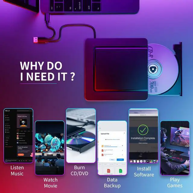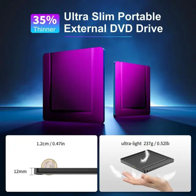 Plug-and-Play Convenience: Our External CD/DVD Drive offers effortless setup - simply plug into a USB 3.0 port for instant recognition, eliminating the need for additional drivers. Enjoy seamless connectivity and immediate access to your discs without any hassle. High-Speed Data Transfer: Experience lightning-fast data transfer with USB 3.0 technology, ensuring swift performance for reading, writing, and burning CDs/DVDs. Maximize efficiency and productivity with rapid data transmission rates, enhancing your overall user experience. Wide Compatibility: Our drive is compatible with various devices and operating systems, including Windows, Mac, and Linux. Whether you're using a laptop, desktop, or notebook, our drive seamlessly integrates with your setup, offering versatile functionality across different platforms. Durable Yet Portable Design: Crafted with durability in mind, our drive features a robust construction to withstand everyday use. Despite its sturdy build, it remains lightweight and portable, making it ideal for on-the-go use. Take your drive wherever you go and enjoy reliable performance wherever you are. Versatile Functionality: Beyond its role as a CD/DVD reader and burner, our drive doubles as a USB hub, providing additional connectivity options for your devices. With versatile functionality, you can easily transfer files, connect peripherals, and expand your device's capabilities, all in one convenient package.