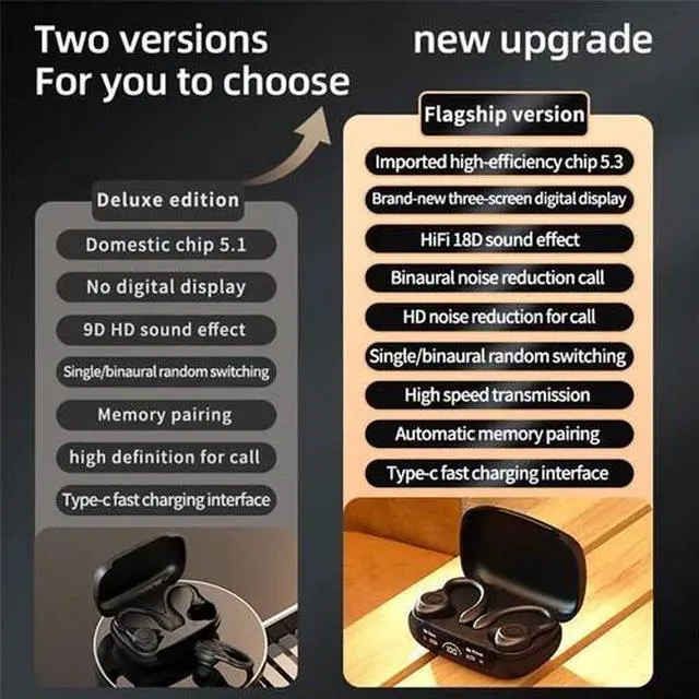1.Powerful Bluetooth 5.3 chip: Adopted the newest Bluetooth V5.3 chip set and wireless technology, our earphone connect quickly and stably, which resists the interference of various electromagnetic waves during exercise, and makes running more comfortable.