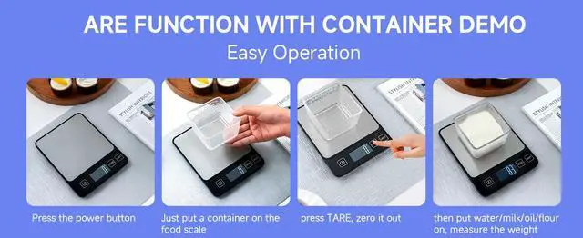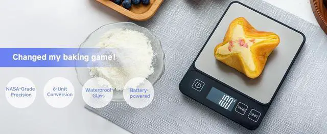 - Versatile features, easy zero: The digital kitchen scale has a convenient tare function that allows you to subtract the weight of the container to get accurate measurements of your ingredients. This is especially useful when weighing liquids or powders.