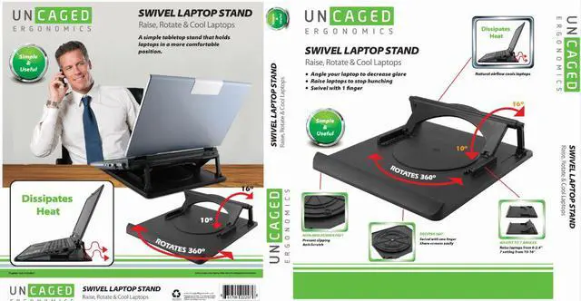 RaiseLaptops: Elevate laptops up to 2.5 inches to promote better posture and stop hunching * Swivels! Base rotates 360-degrees letting you quickly adjust your viewing angle and share your screen.
