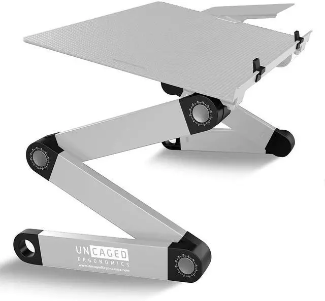 Your wrists deserve some love, too! Our negative tilt keyboard stand is designed to optimize your wrist health. The 180-degree rotating aluminum panel on this keyboard lifter for desk allows you to type with a neutral or negative keyboard riser tilt, promoting better wrist alignment. Crafted from durable aluminum, this standing keyboard tray is as sturdy as it is sleek. Adjust the height up to 18 inches, find your perfect typing angle, and when you're done, fold it up and take it anywhere. No installation required. More than a keyboard elevator for the desk, this keyboard table works just as well as a chair keyboard tray, couch keyboard and mouse tray, or keyboard lap tray - comfortably holding computer keyboards hands-free when you're working in a relaxed setting.