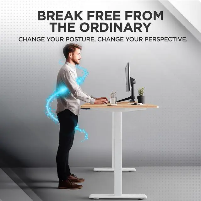 RISE UP is a premium height-adjustable, electric standing desk frame. Its packed with all the quality features you need and no fluff. The precision, laser-cut steel frame has 2 best in class motors with over a decade of proven durability, easily programmable memory settings for 1-touch adjustments, and is adjustable in width to accommodate your unique space and desktop requirements. Quickly move from sitting to standing with this durable, purpose-built electric standing desk.LASER CUT STEEL FRAME:** Adjustable Height (23.6-49.2")** Adjustable Width (42.3-71")** 2 Motors (1 in each leg) for a fast, smooth, even height adjustment** 3-stage legs (more height range and higher load capacity** Anti-Collision Technology to help prevent lowering on top of an object** Color: WhiteCONTROL PANEL:** Automatic Up/Down Adjustment** 4 Programmable Memory Settings (for 1-touch adjusting)** LED Height Readout Screen.