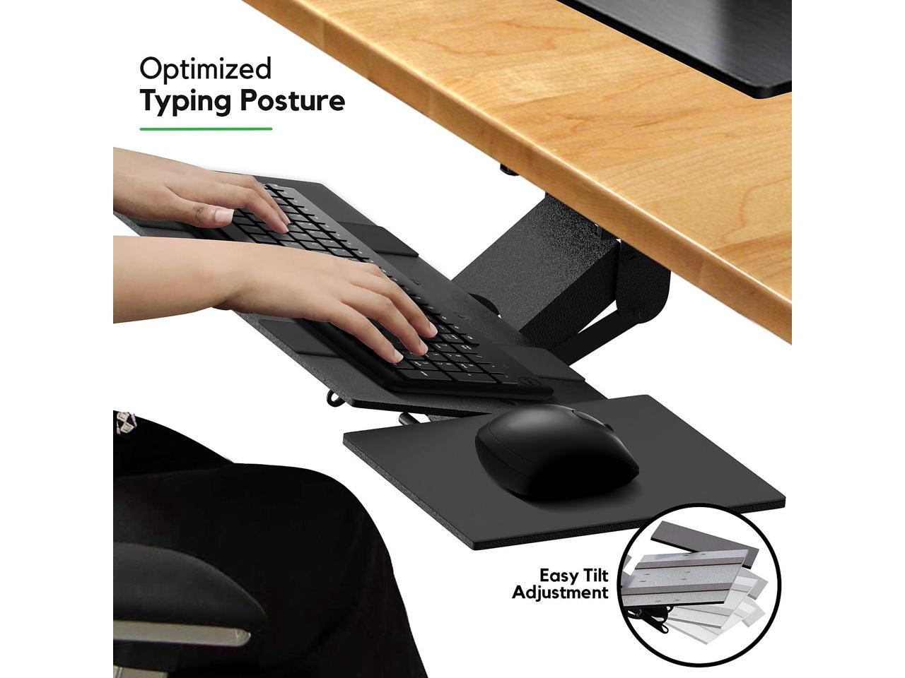 - ADJUSTABLE TILT - Type with a neutral or negative wrist angle and quickly change your typing posture throughout the day with a fast, intuitive tilt adjustment with our keyboard tray under desk adjustable height.