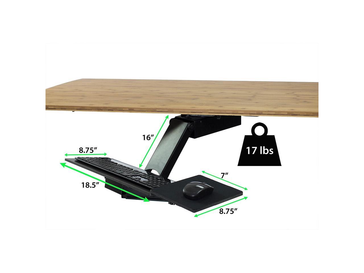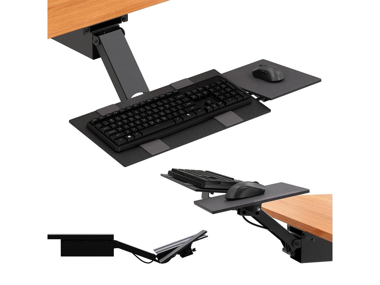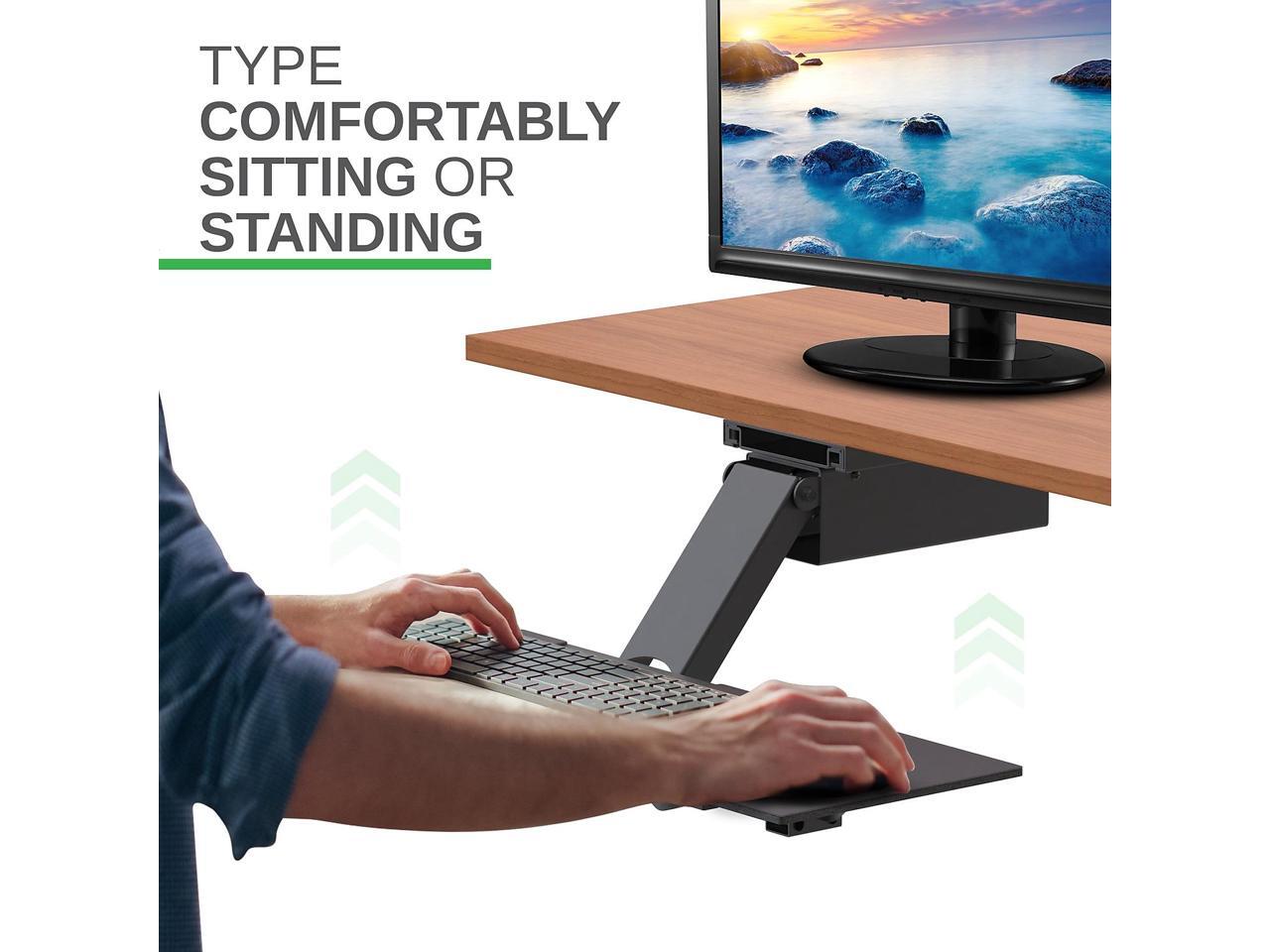 - Swift and Seamless Standing - the sit stand keyboard tray allows effortless transition between sitting and standing . This keyboard and mouse tray under desk lets you quickly elevate computer keyboards up to ~8.5 inches above desk height.