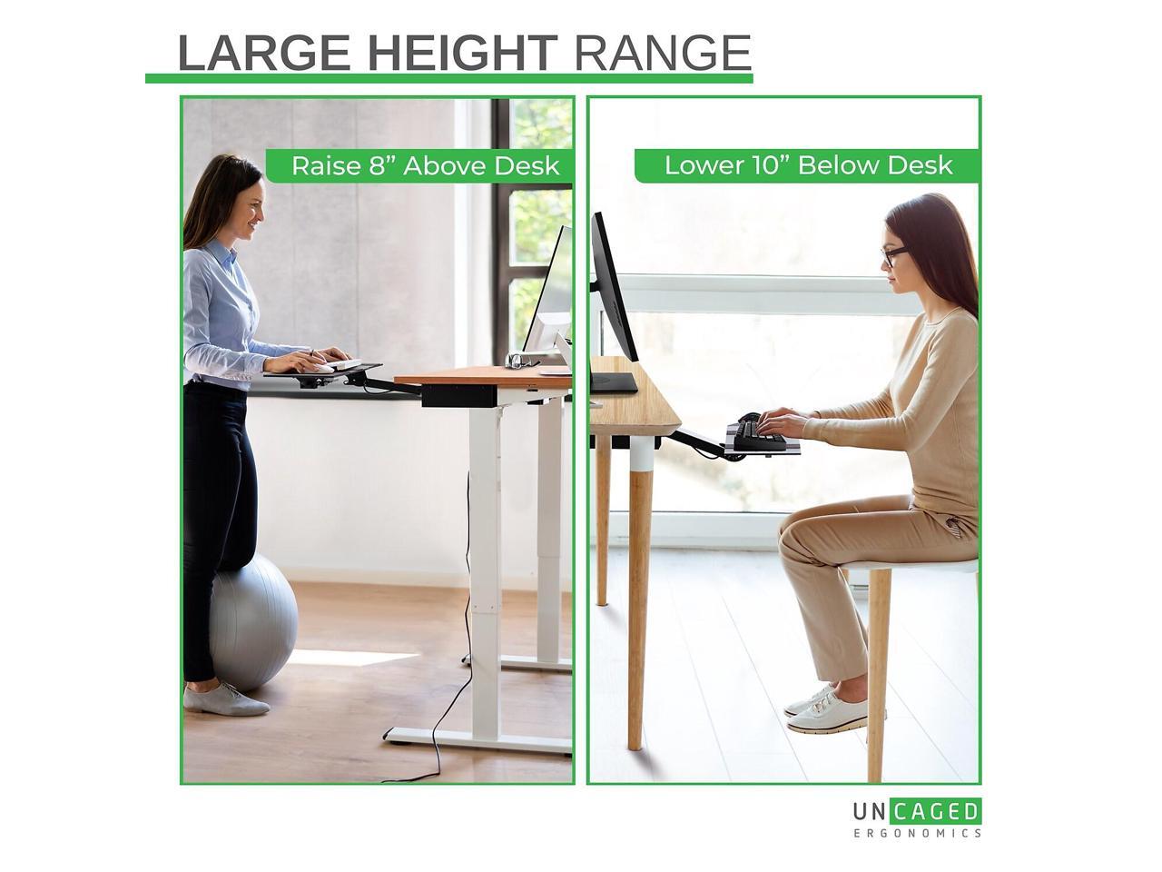 - Better Posture, Better Productivity - Comfortably improve your workflow with our adjustable keyboard tray under desk. The pull out keyboard tray under desk positions your keyboard up to 10" below desk height.