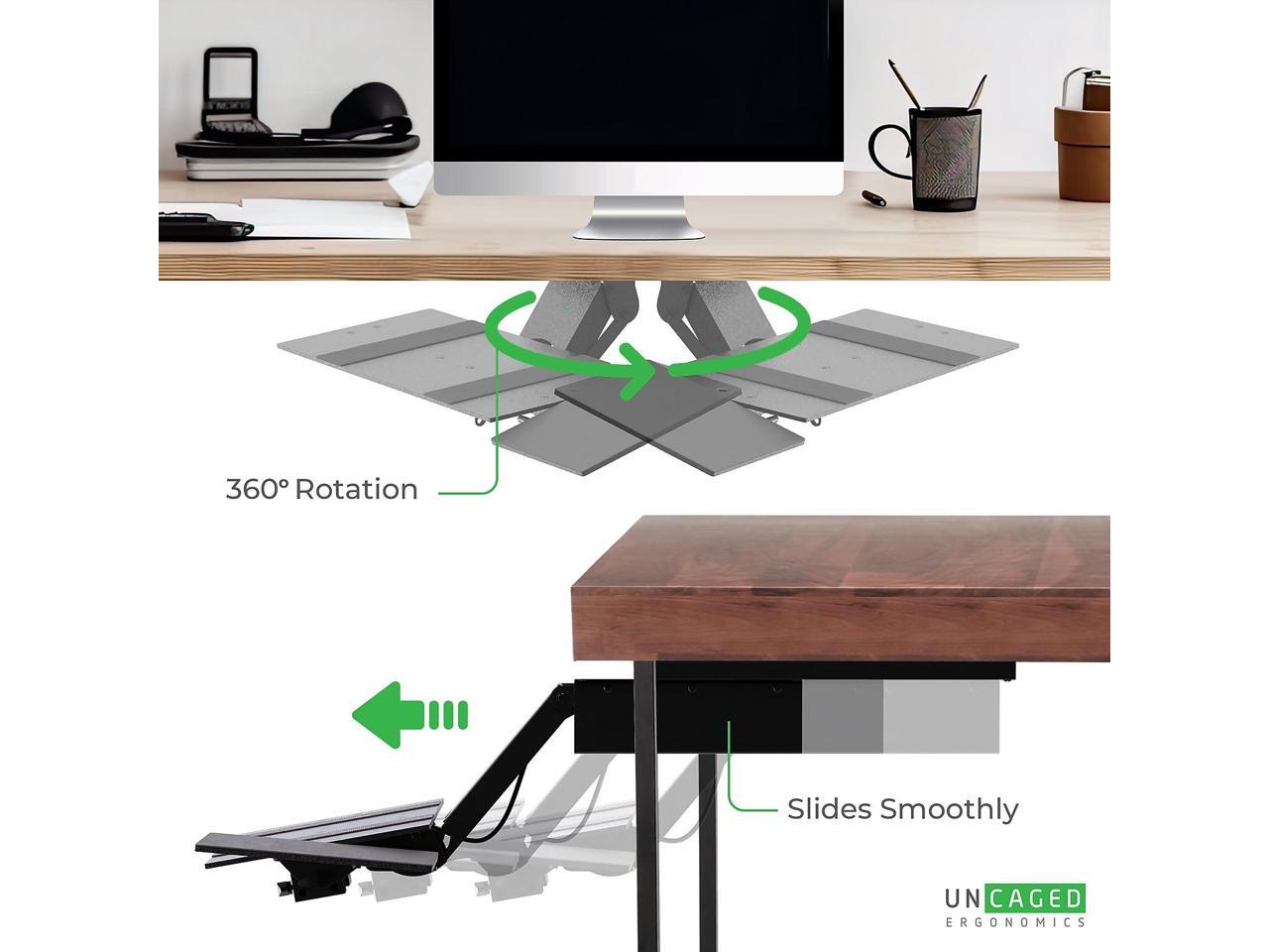 - Built to Last - Invest in durability and stability with our commercial-grade keyboard desk mount. The keyboard desk attachment is crafted from robust steel and compact board.